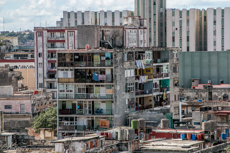 Havana, Cuba, 2014: Apartment house - photo from hotel rooftop restaurant.