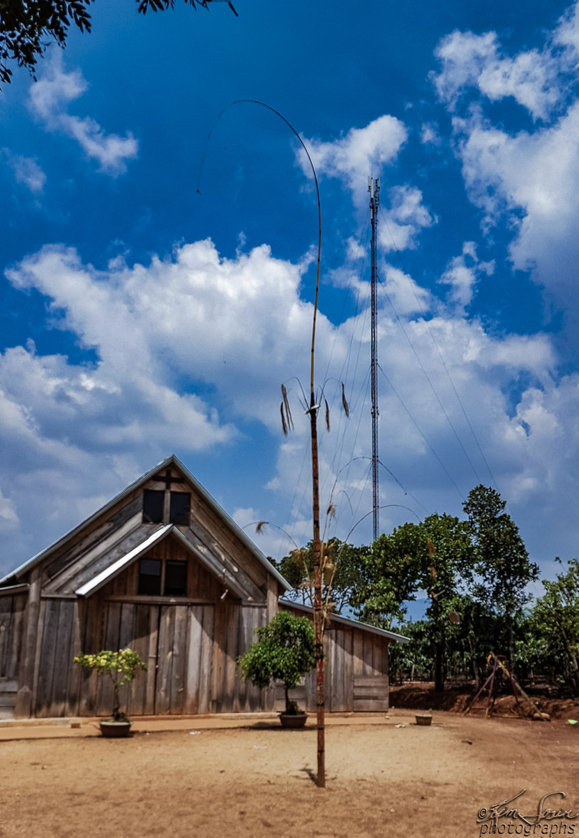 Here we have a Christian church, a tribal religious item in front, and the cell tower behind. My cell reception here was better than in some area of Nebraska!