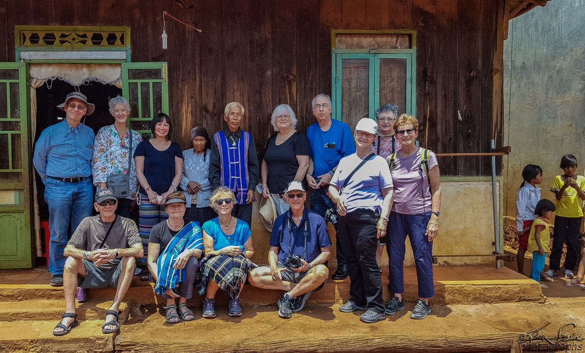 We pose with the chief and his wife. Note that one of our troup bought the piece she just finished.