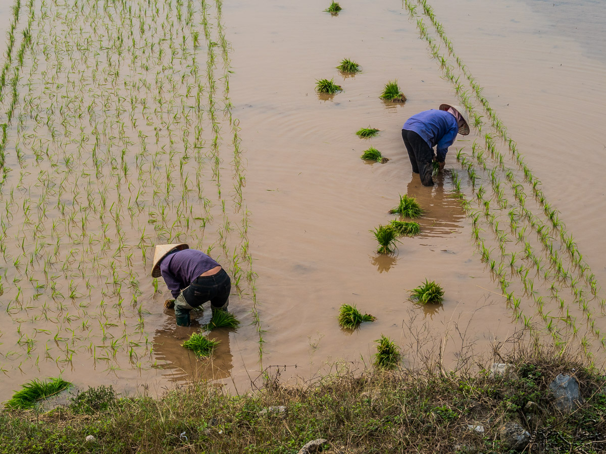 Planting rice.