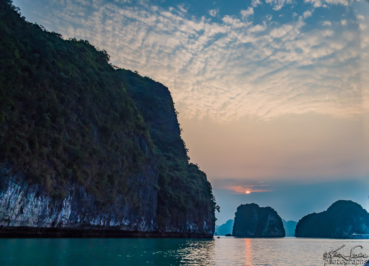 HaLong Bay as the sun sets.