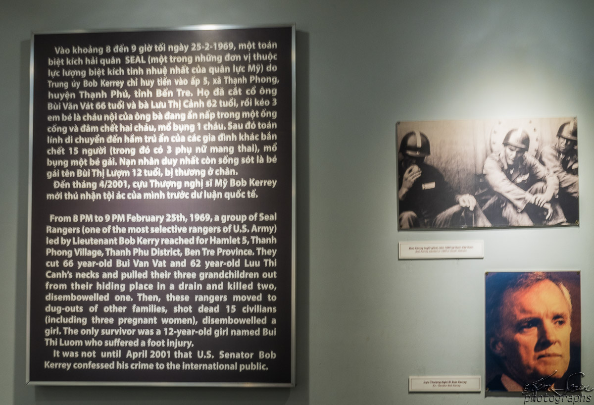 Bob Kerrey, Governor and Senator from Nebraska, who admitted in 2001 to ordering an attack that killed women and children rather than Viet Cong. I think it was part of his pennance to himself to help the museum create this display.