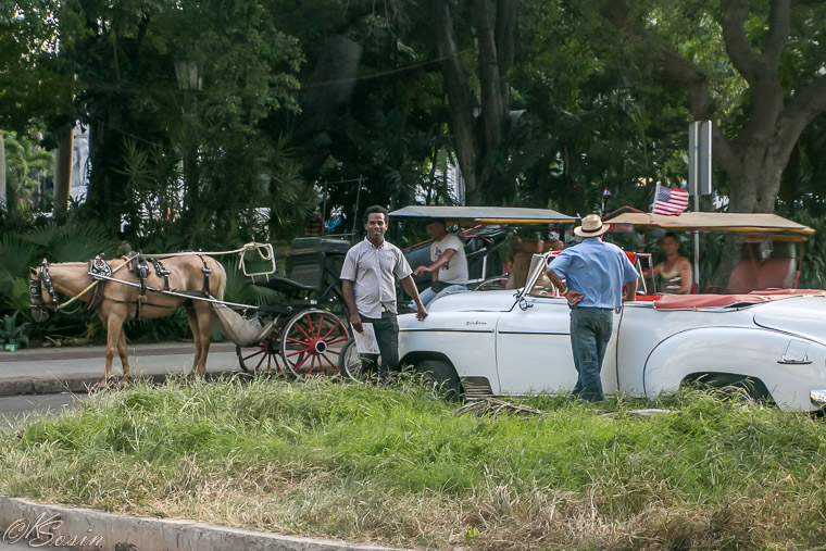 Havana, Cuba, 2014. Transportation in various forms in front of our hotel.
