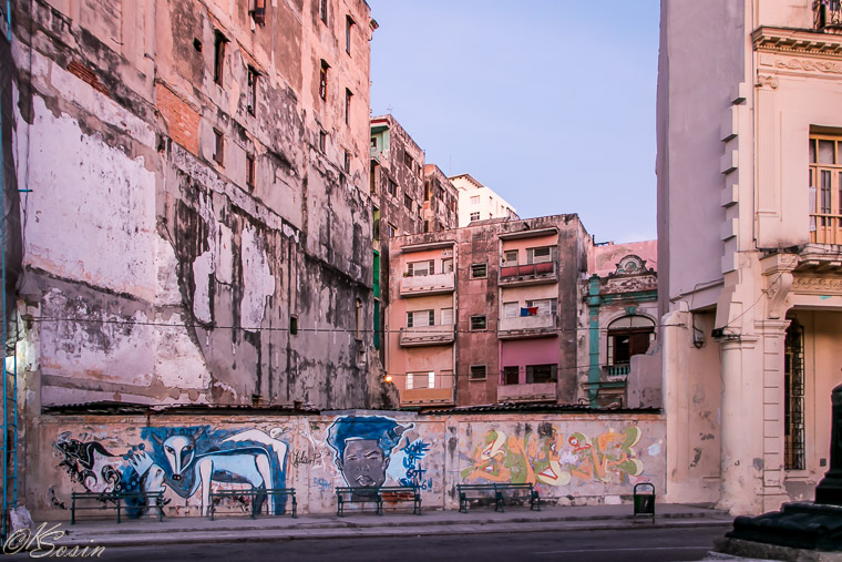 Havana, Cuba, 2014: Buildings and walls viewed from the Prada walk.