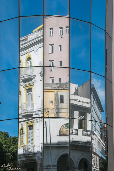 Havana, Cuba, 2014: Closer view of the mirrored front of the Museo de Bellas Artes.