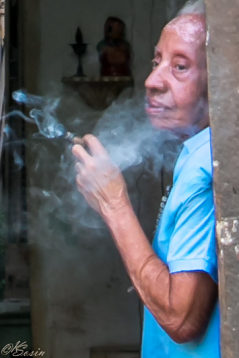 Havana, Cuba, 2014: She's enjoying a Cuban cigar!