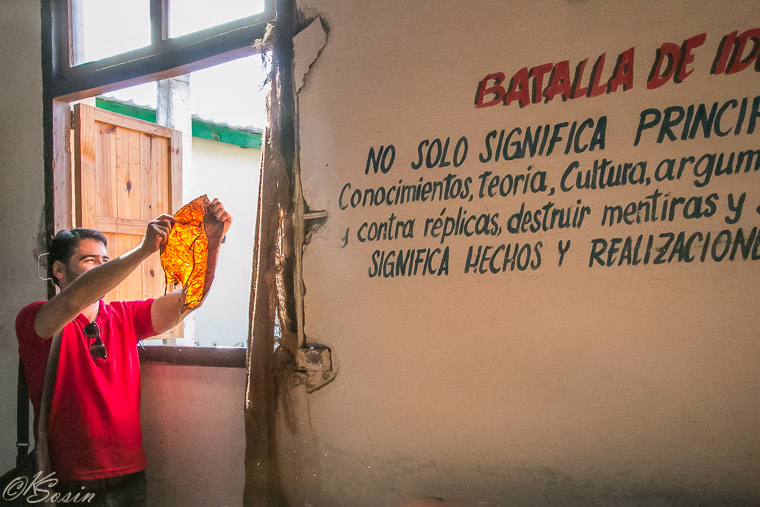 ViƱalles, Cuba, 2014: Sandor shows us the tobacco leaf.