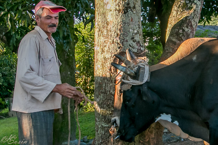 ViƱalles, Cuba, 2014: the ropes are attached to equipment on the horns.