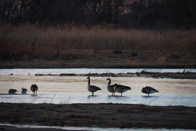 But so far, no cranes landing. Only this family of geese settling in for the night.