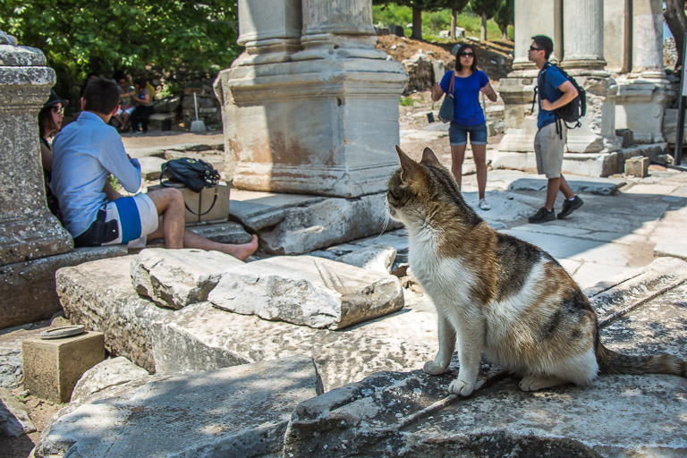 Ephesus ruins cat looking for next meal. Seems to be well fed.