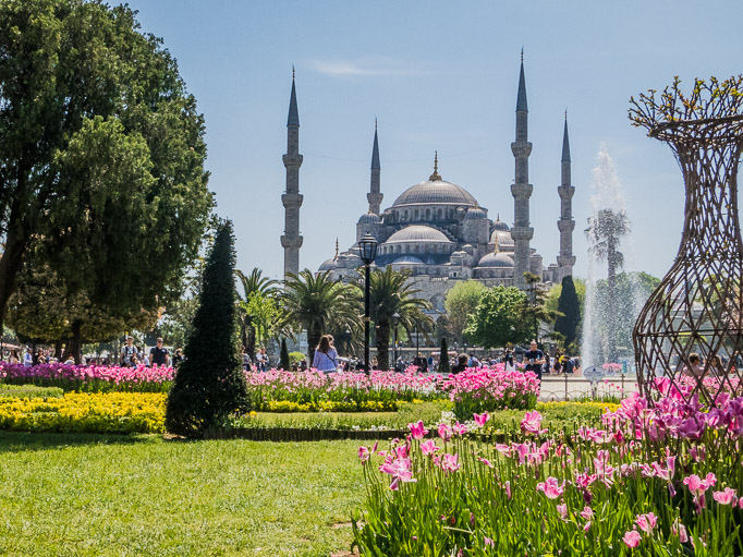 The Blue Mosque across the gardens.