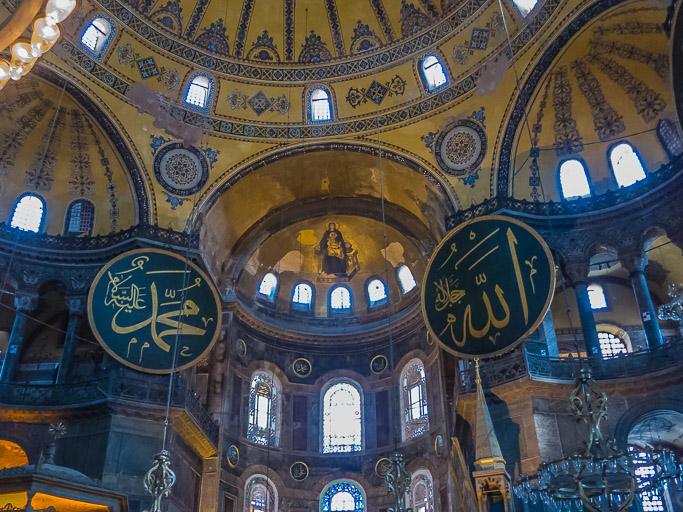 Moslem calligraphy on each side of the Christian Madonna.
