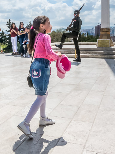 She wants a good view of the changing of the guard!