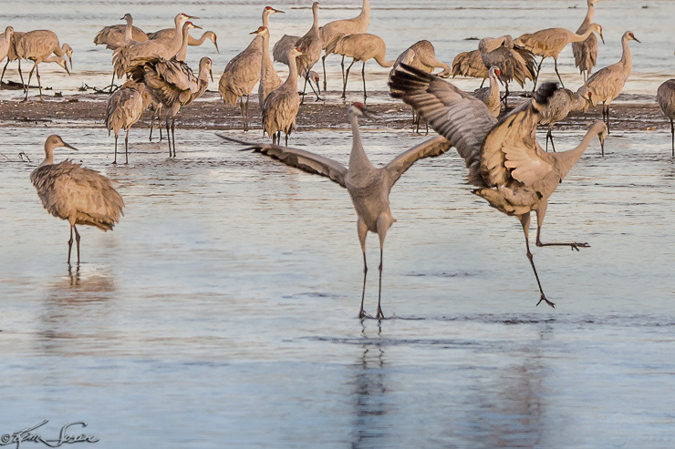 A new step is introduced! In the morning sunrise, the gray birds look brown and gold.