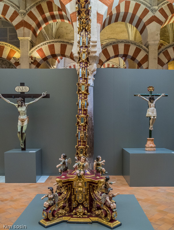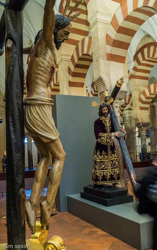 Cordoba-More statues of crucifiction framed by mosque arches.
