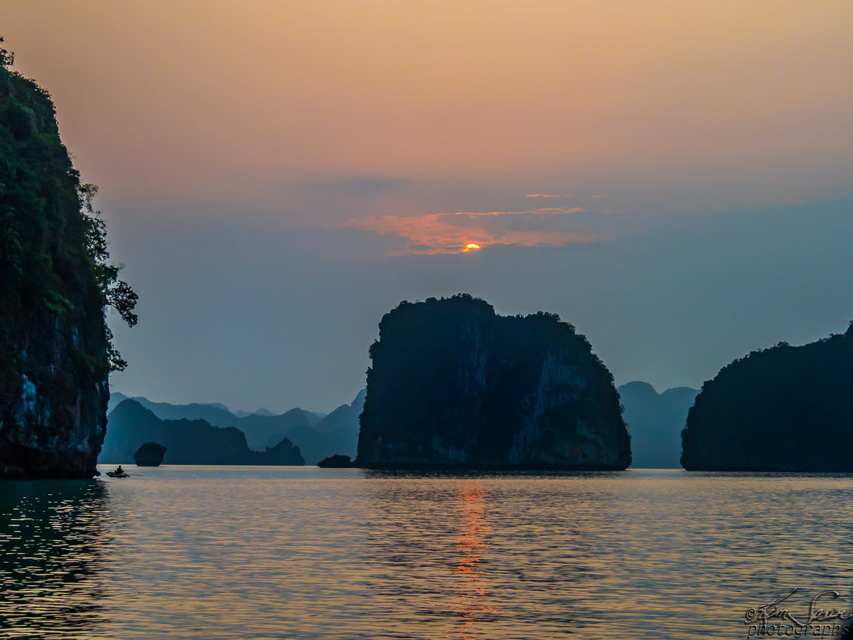 HaLong Bay as the sun sets.