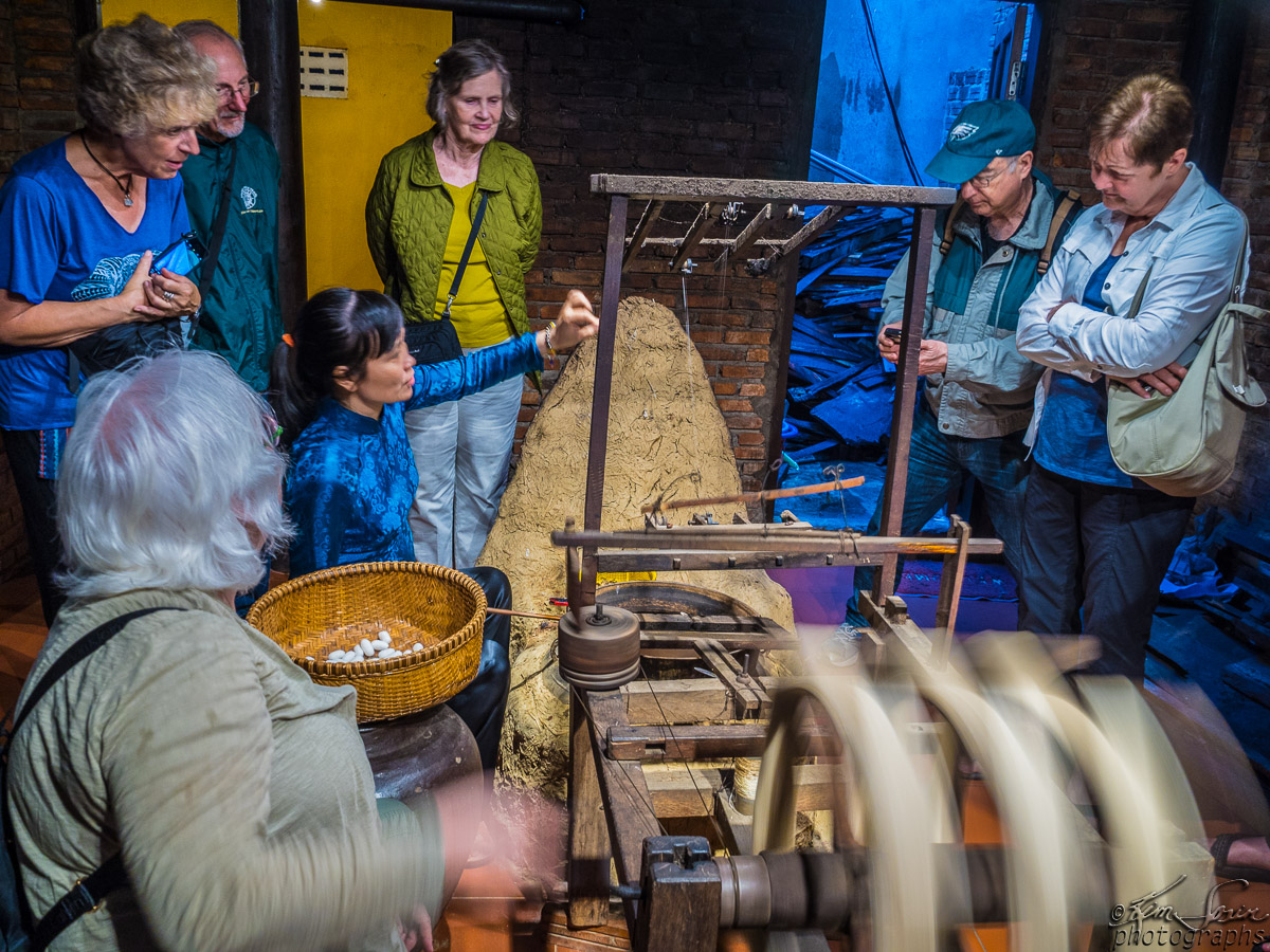 Watching as she pulls out threads of silk.