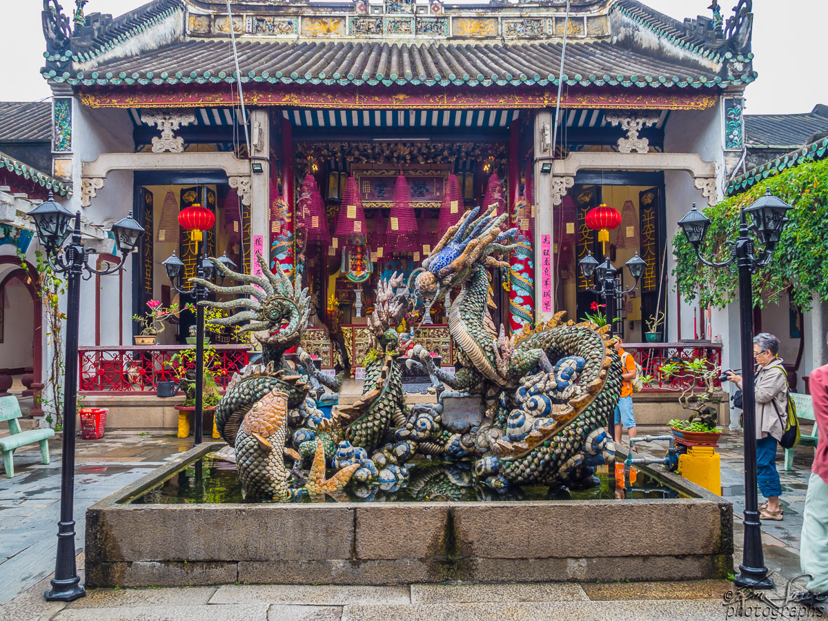 Dragon fountain in front of Quang Trieu Cantonese Assembly Hall.