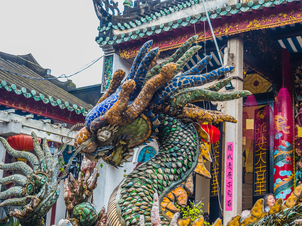 Detail-Dragon fountain in front of Quang Trieu Cantonese Assembly Hall.