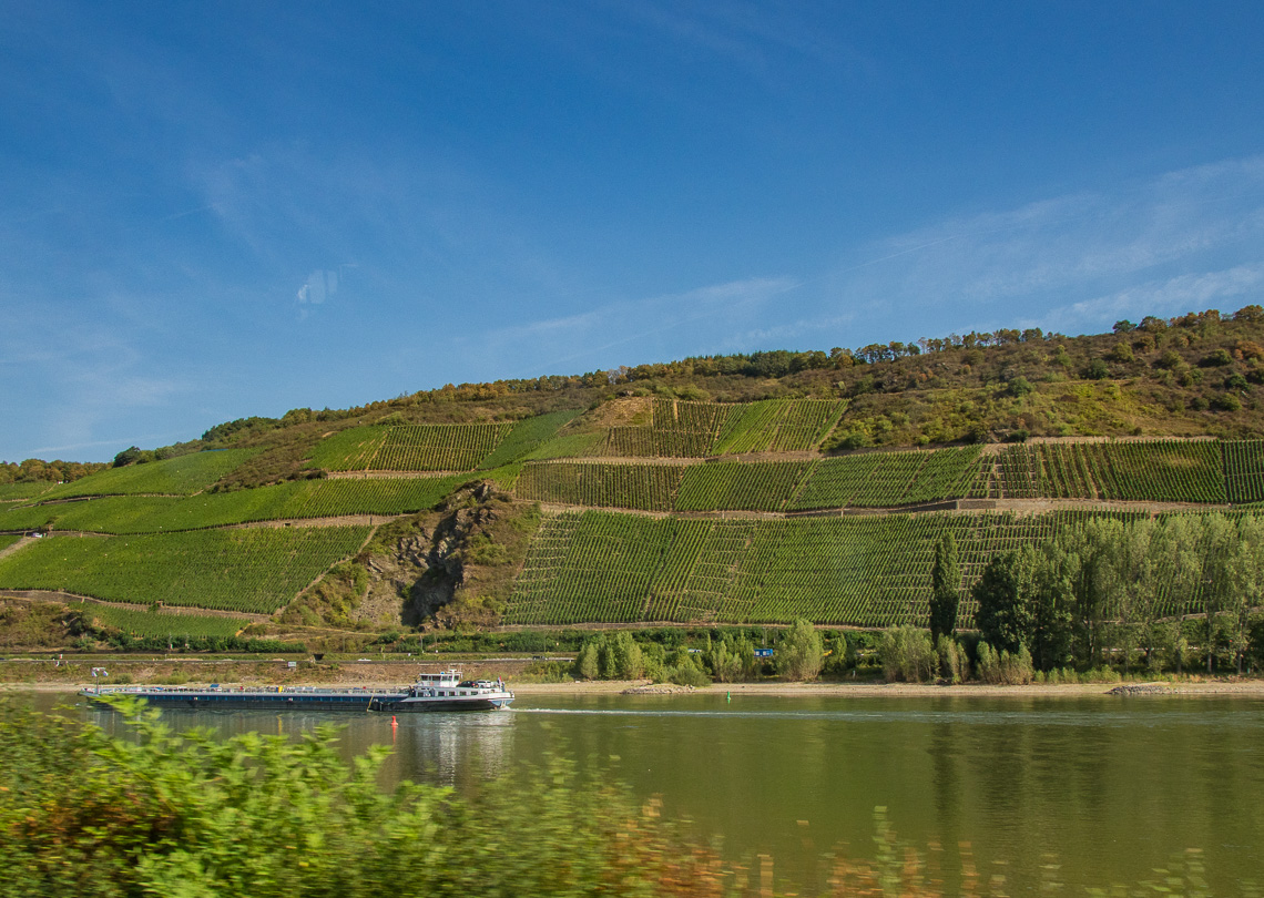 This whole area is dotted with steep slopes with grapes growing for German wines. All of the vines are planted with the rows verticle, not terraced at all.