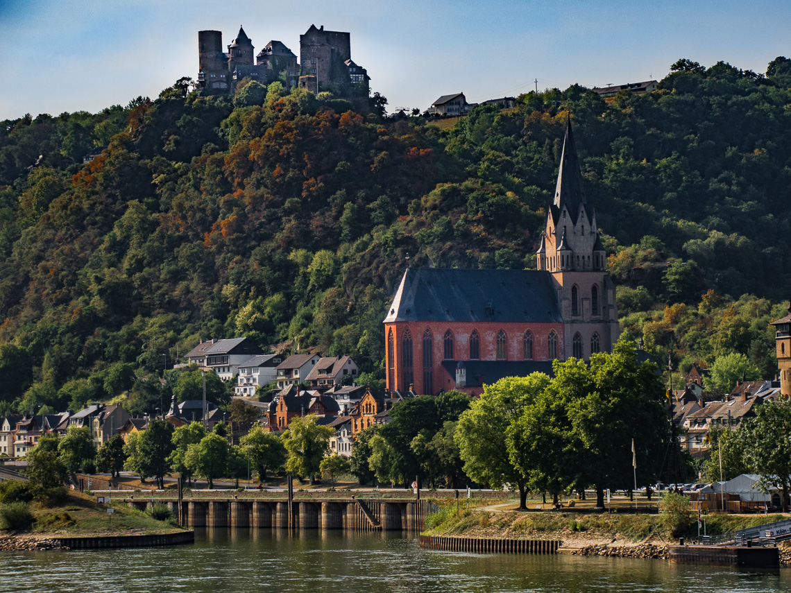 Gorgeous modern church looking a little like the ancient castle on the hilltop.