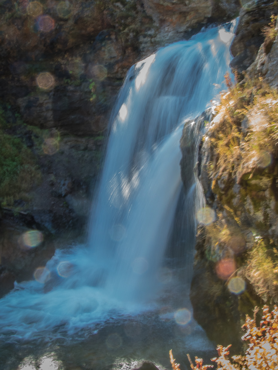 Moose Falls (with a slow shutter), bright sun and sundogs.