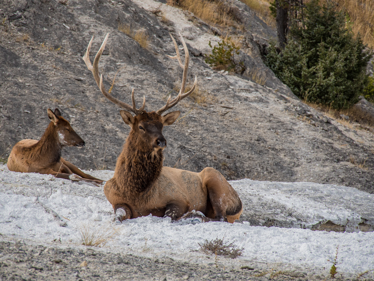 Elk family appear to be in snow, but this is a material from the springs.