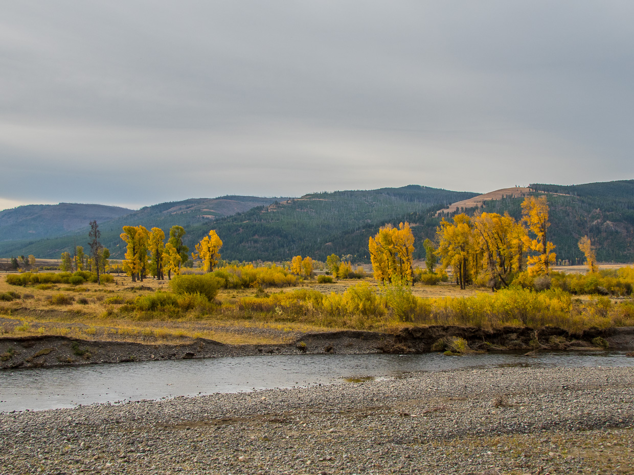 The clearing between those yellow trees is where this saga happened, so we were not very close.