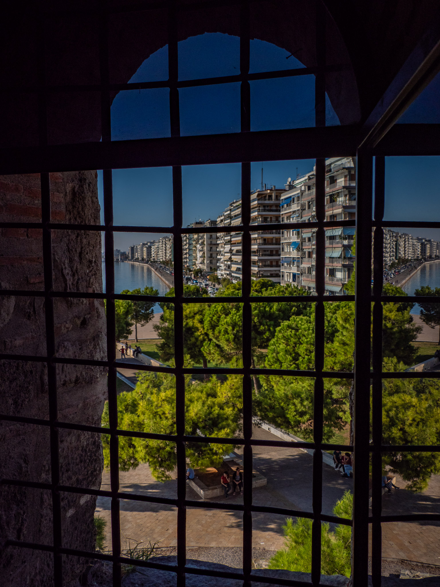 Back in Thessaloniki, a view from the 15th century White Tower window. This was once known as the tower of blood.