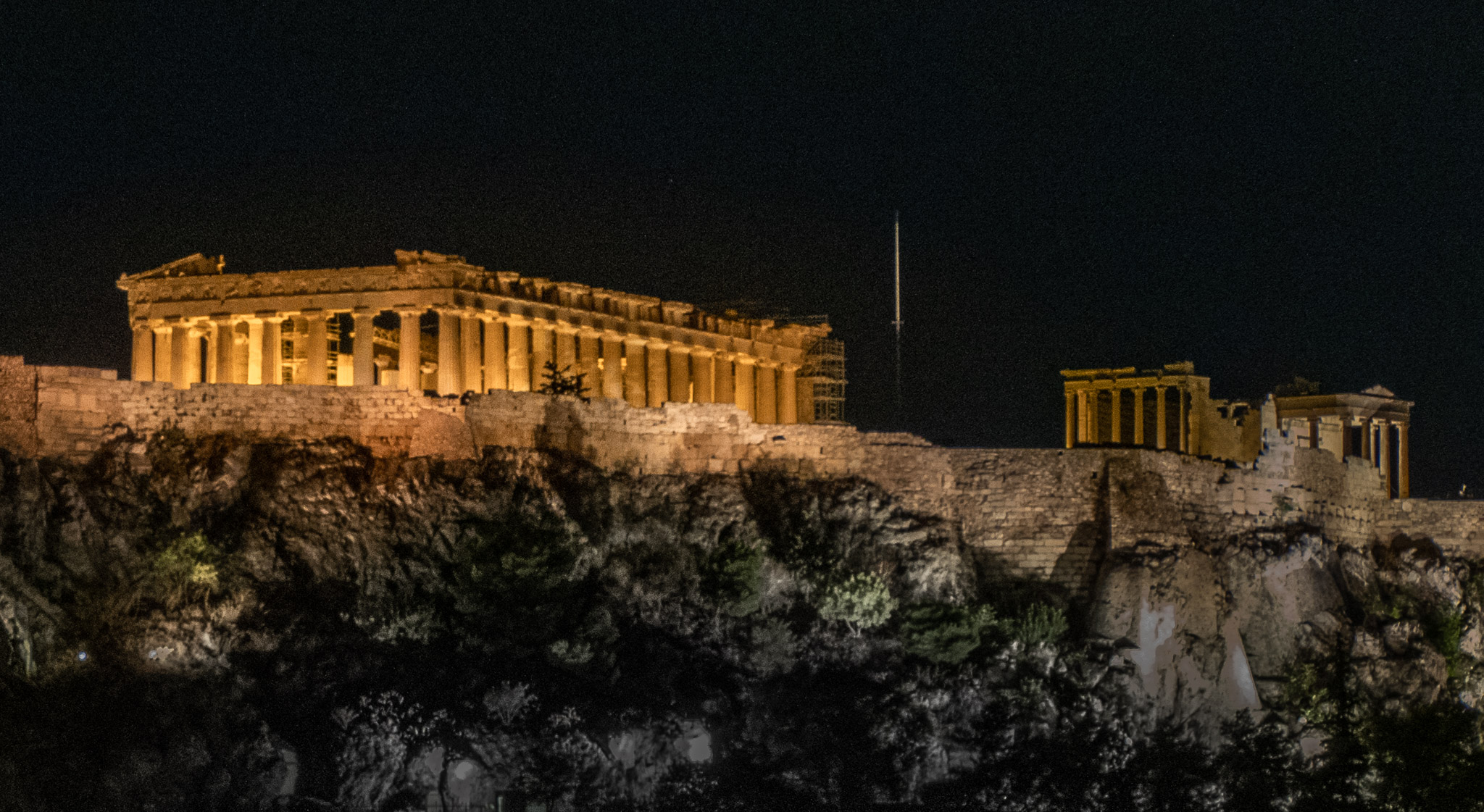 View of the Acropolis from our hotel rooftop bar, first night in Athens.